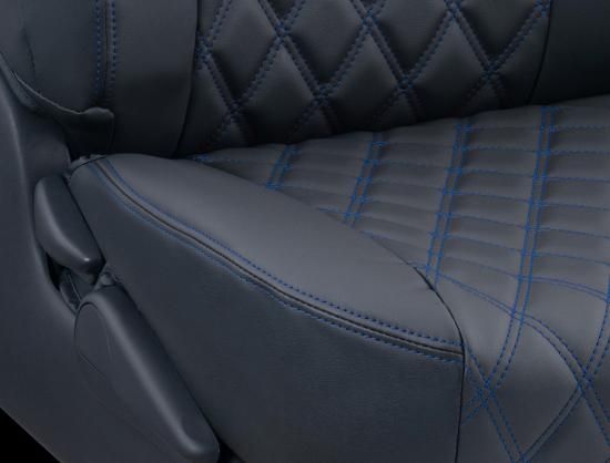 - 存在感のあるダイヤ柄キルティングが、車内をポップでおしゃれな空間に演出。